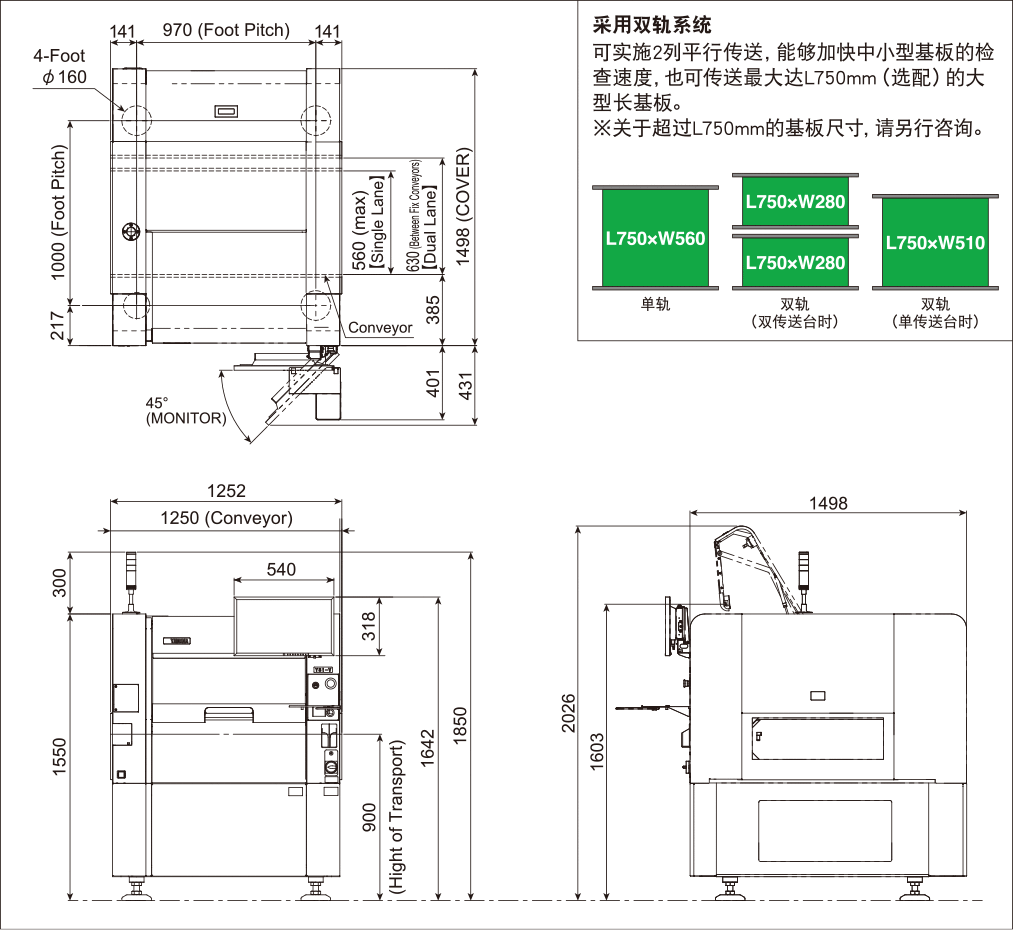 | 对象基板尺寸mm | L610 × W560(最大) ~ L50 × W50(最小)(单轨机型) ※支持L750mm的长基板(选配) |