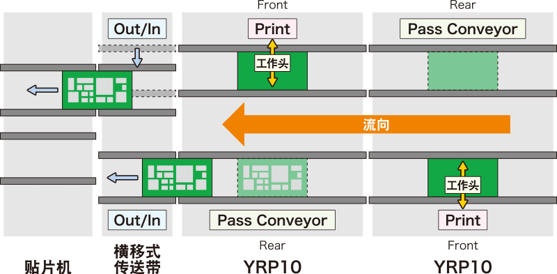 通过串联连接2台YRP10,可以实现完全独立的双轨运行。同时具备双轨运行和准备作业自动化功能。与横移式传送带配套,灵活应对与下游装置的连接。