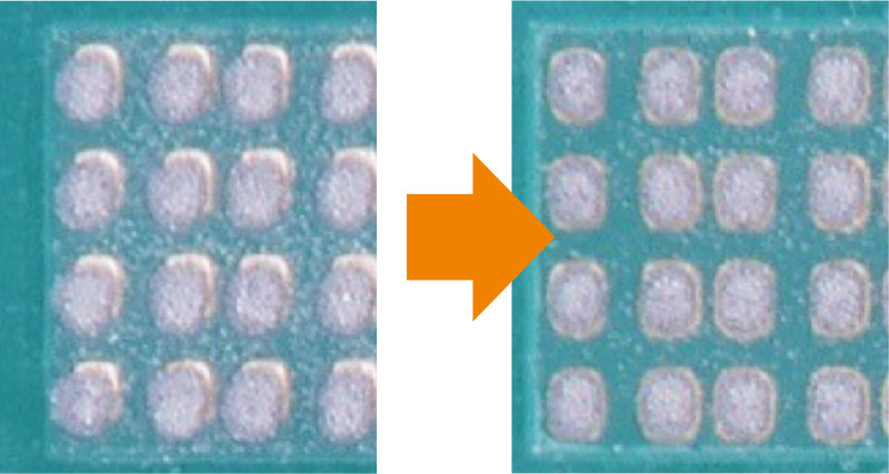 采用专用的检查相机,可以实现清晰的印刷检查。通过检查结果的反馈,还可以自动重新印刷及网板清洁。