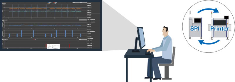 可使锡膏体积的变化与印刷机的状态进行关联显示,当发生不良时可以对印刷机的状态进行确认,促进了生产线运转率的提高及品质改善。